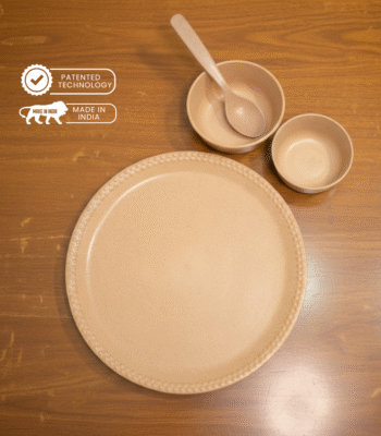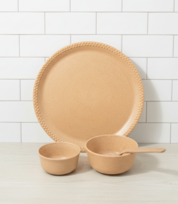 Eco-friendly 4-Piece Bamboo Dinner Set (1 Plate + 2 Bowls 300ml, 180ml + 1 Spoon)